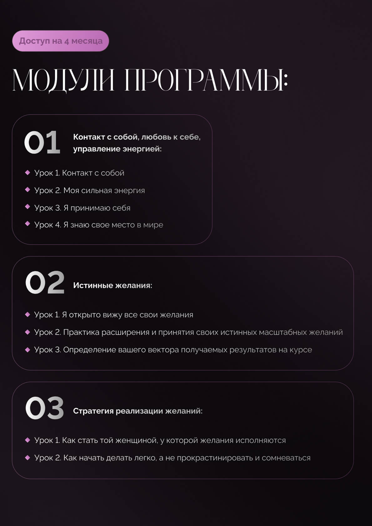 Поможет четко понять себя, свои желания и новые смыслы. Последовательно шаг за шагом выстроить внутреннюю опору, стратегию и конкретные действия, которые приведут к необходимому результату